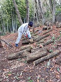 木こりに挑戦。小学生の通学路に木が倒れたら大変なので、道路の上にかかる木の伐採に挑戦。なお、倒した木は椎茸の菌打ちに利用。()2026.2.17 |
