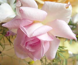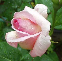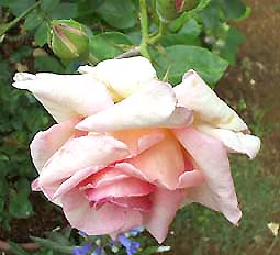 透明感のある淡いピンクの花びらにライラックのぼかしが入る、非常に四季咲き性、花付きに優れたアーリーハイブリッドティです。 耐寒性もあり、丈夫。鉢栽培も可能。枝は横張りです (^◇^;) 2002年、アンティークローズさんから購入。