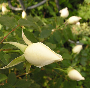 | パークスイエロー (Parks' Yellow) 1824年 園芸家のジョン・ダンバー・パークスが中国からロンドン園芸協会に送り、最初にヨーロッパに紹介された4種のばらの一つといわれています。ハイブリッド・ティローズの親。 2003年10月、関西のニューローズさんより購入♪ とても大きな苗で、長いツルのまま送ってもらいました。おかげで、春一番にたっぷりのツボミがつき、長い間楽しむことができました。 |