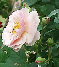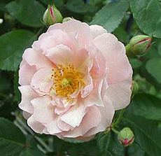 イギリス 作出年:1925年 作出者:Rev.Joseph Pemberton 花径3〜4cm。 2002年5月、近所の花屋さんのスタンプカードがいっぱいになり、新苗をサービスでゲット。すぐに大きくなり、秋には地植えにすることに。強健な品種です。 |