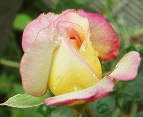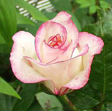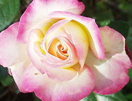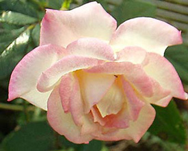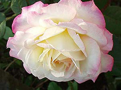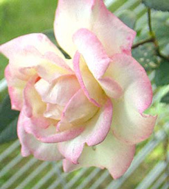 1974年 日:加藤 花茎7cm 1999年春、近所の花屋さんにて春苗で購入。 同名のフロリバンダ(これは別の人が作出)のツル。 中輪でクリーム色にピンクのブラッシュが入るかわいい花です。四季咲き性があり、秋も花をつける。切り花にしても、他の花と相性がよいです。 |