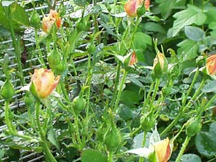 非常に花つきよい、半剣弁咲きの品種。フルーツの香りで花持ちがよい。日の光で赤くなる。株はやや横ばりで1m。強健。