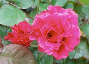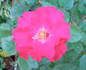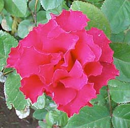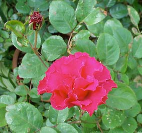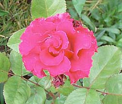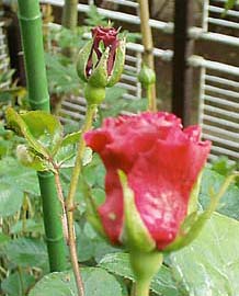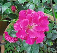 日本ばら園の通販で購入。挿し木苗なので、届いてすぐの幼苗時は、うどん粉病に悩まされたが、今は丈夫になり、どんどん大きくなっている。 切り花によく使われ、花持ちがよい。大房咲きになり、よく茂る。