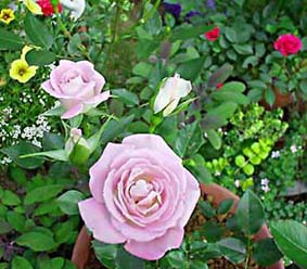 1985年 米:Benardella 花茎6cm 花びらの付け根や裏側がアイボリーで、淡い紫色を帯びたピンク色をのせる。香りがある。ミニバラの割に大きな株になる。 2001年、向ヶ丘遊園のばら苑で購入。ひとめぼれ♪ |