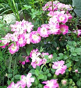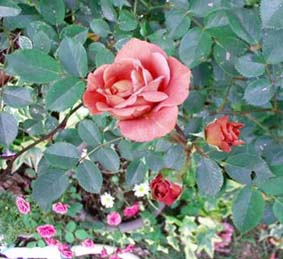 1989年 仏:Mailland 花茎4cm 茶色から徐々にピンクを帯びる。ほのかに香りあり。ツルは、ミニでもフロリバンダくらいには大きくなり、ツルの扱いに困る。非常に丈夫。次々にたくさん花を咲かせ、四季咲き。開花速度が速い。 |