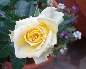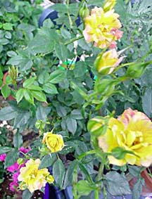 どれも、ひっそりとかわいく咲いてくれます。 黄色のばらは、花びらの重ねが多く、開くとムーンスプライト(フロリバンダ)くらいの大きさになります。ほんのり香りがあります。 |