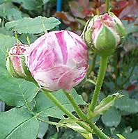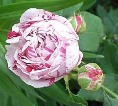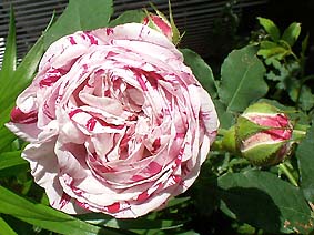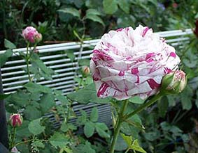 絞り咲きでは、相当有名なブルボンローズ。二季咲き、一季咲きと業者のカタログでは意見が分かれるが、我が家では一季咲き。。 うどん粉病・黒星病に弱い気がするけど、コロコロのツボミ、たくさんの花びら、十分魅力的です。香りはマイルド。 3年目、花が終わってからの枝ののびがすごい!