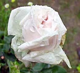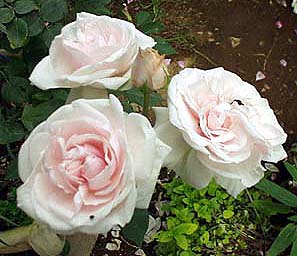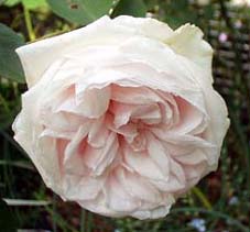 | スーブーニール・ド・ラマルメゾン(B)(Sov.de La Malmaison) 1999年10月、京阪園芸の通販で購入。2000年4月春苗で到着。 有名なブルボンローズ。四季咲き、花茎8cm。うどん粉病に弱いといわれるが、わが家では、丈夫。ソフトピンクで、ロゼット咲き。まさにオールドローズの雰囲気のある花。 |