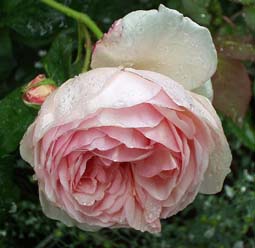 | 香り高く、エレガントなバラ。花茎はちょうど8cmでした。よく咲いてくれます。そしていろんな表情を見せてくれます。オールドローズなのか、いまだに確信が持てないでいます。 ヘリテージとピエール・ド・ロンサールを足して割ったような花だという人がいました。細枝で場所をとらず、育てやすいバラ。 |